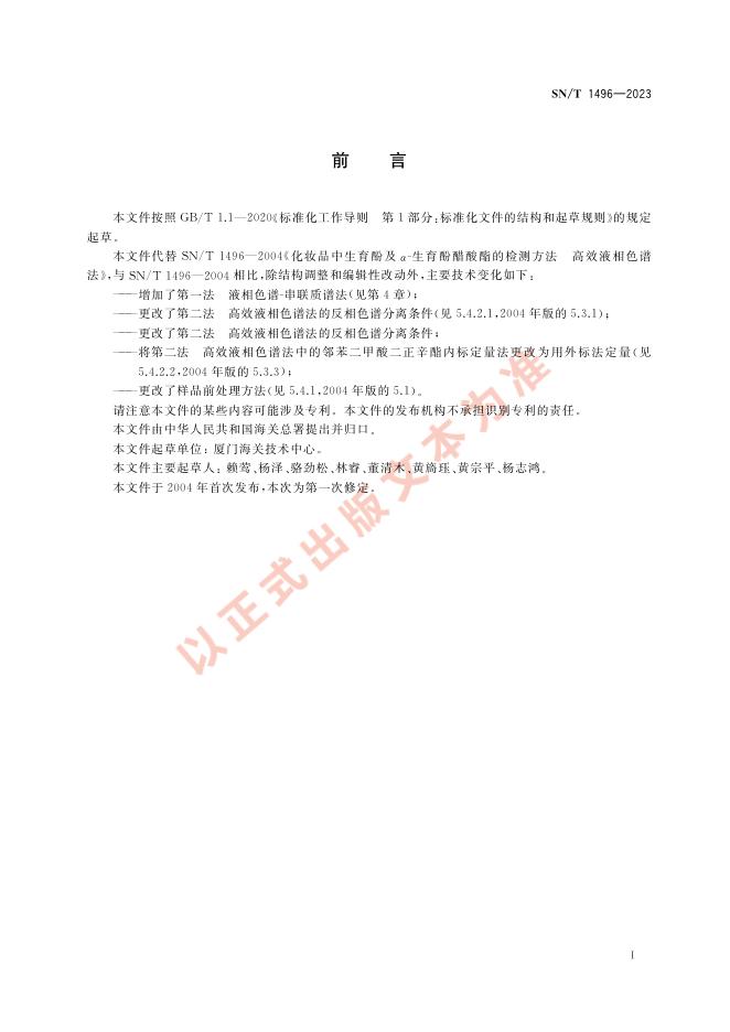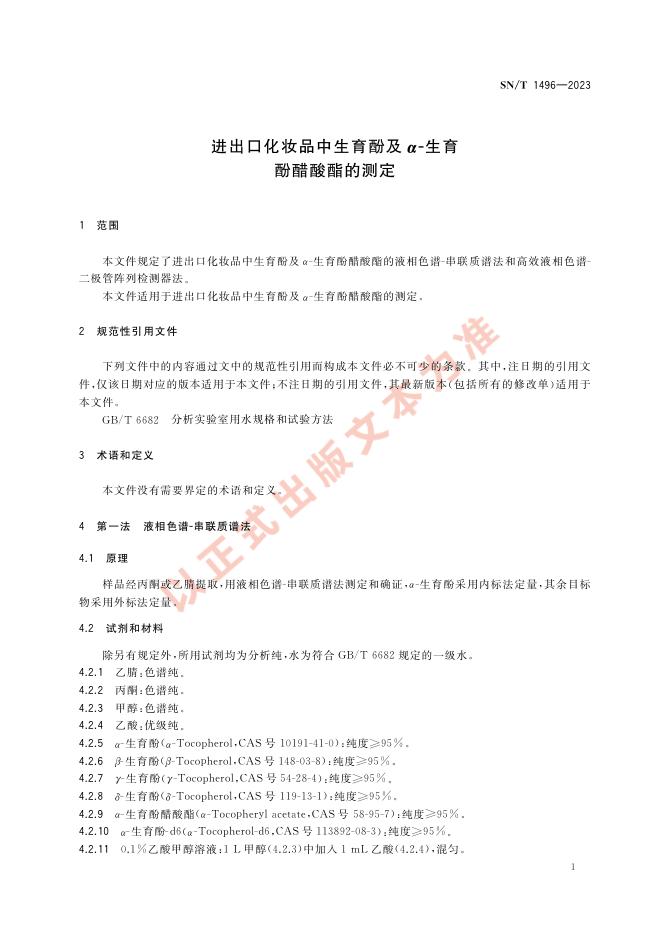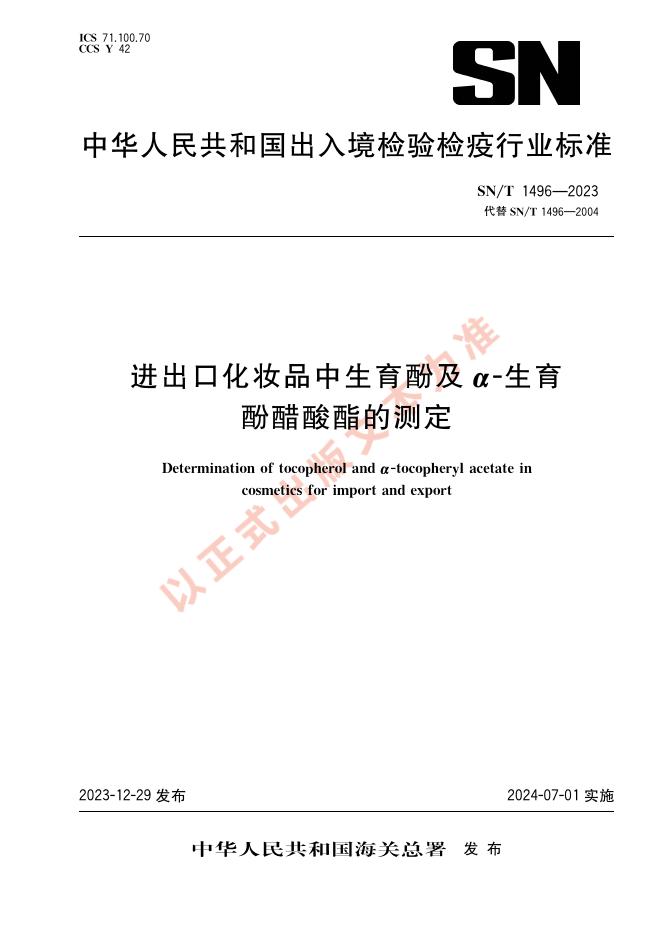 SN/T 1496-2023 进出口化妆品中生育酚及α-生育酚醋酸酯的测定