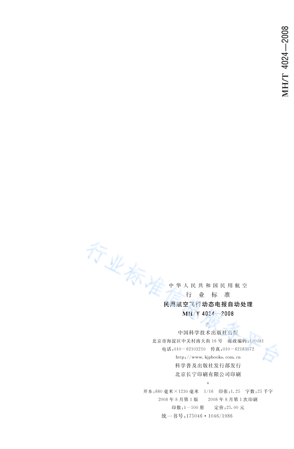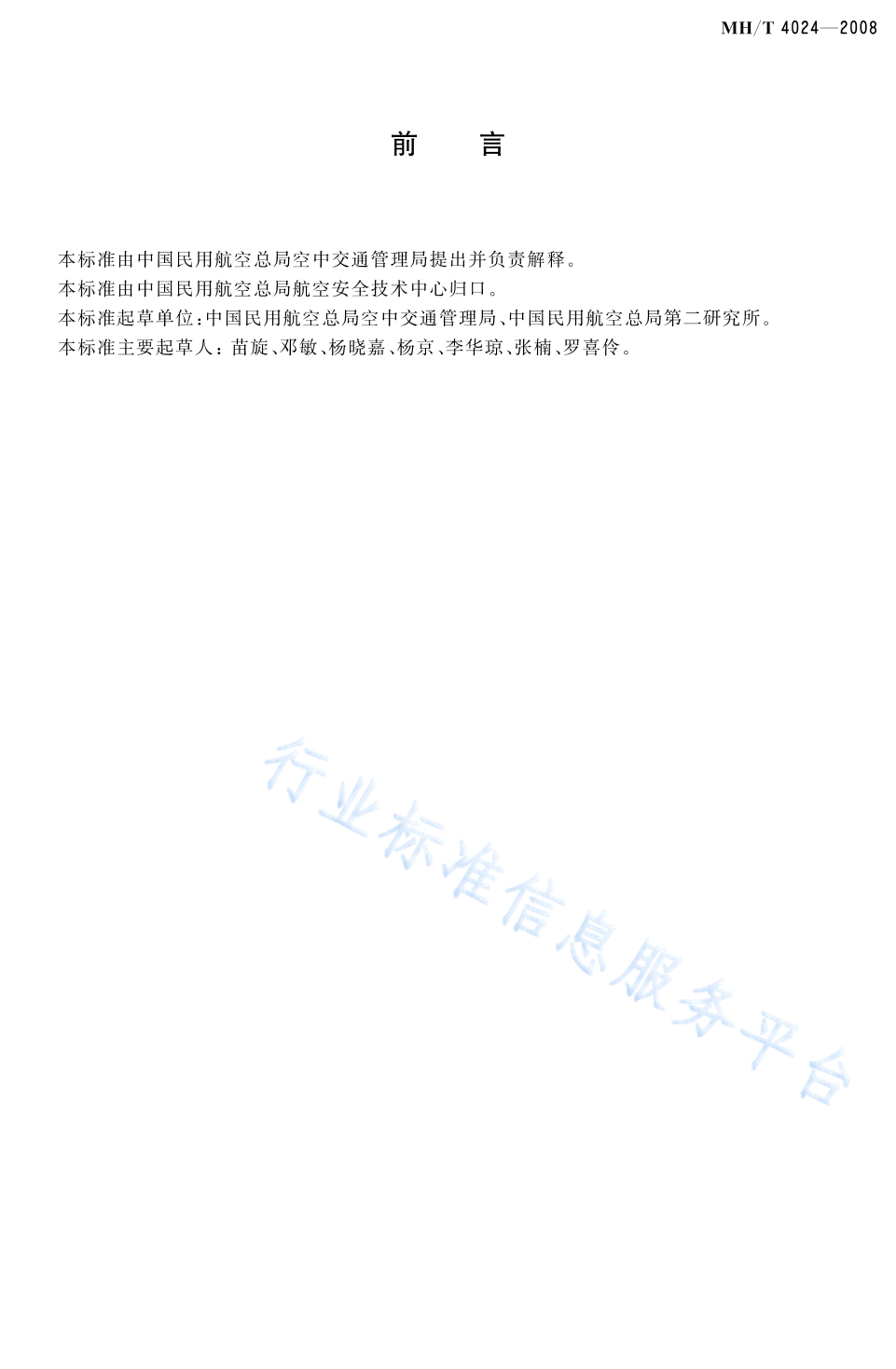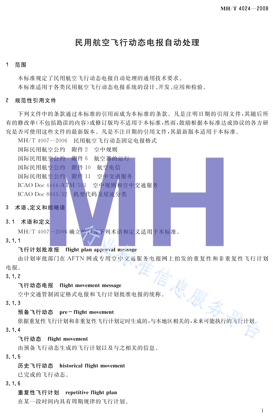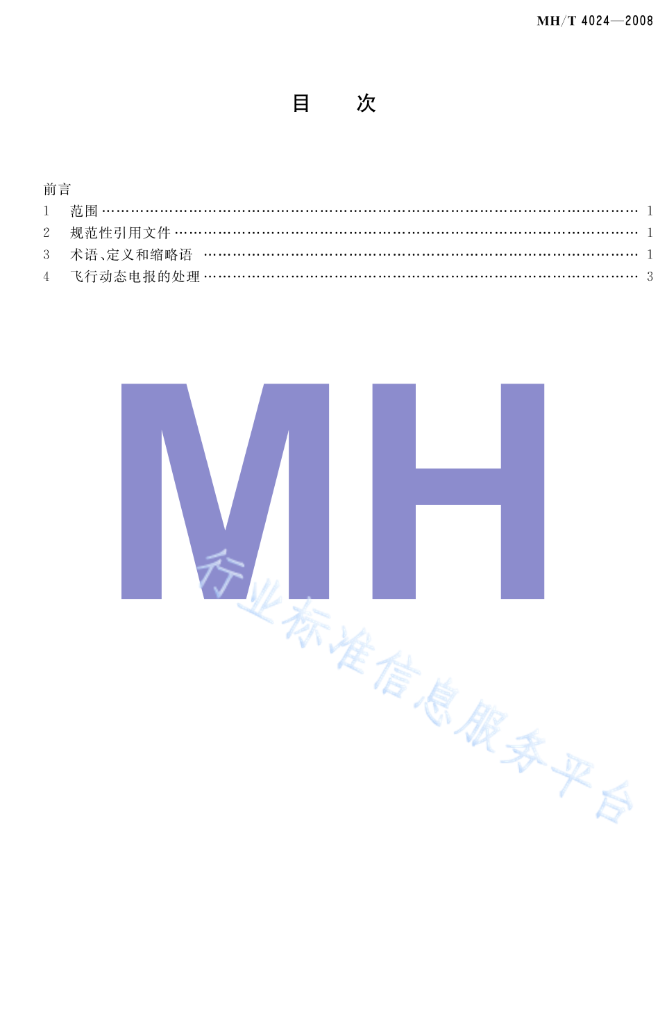 MH/T 4024-2008 民用航空飞行动态电报自动处理