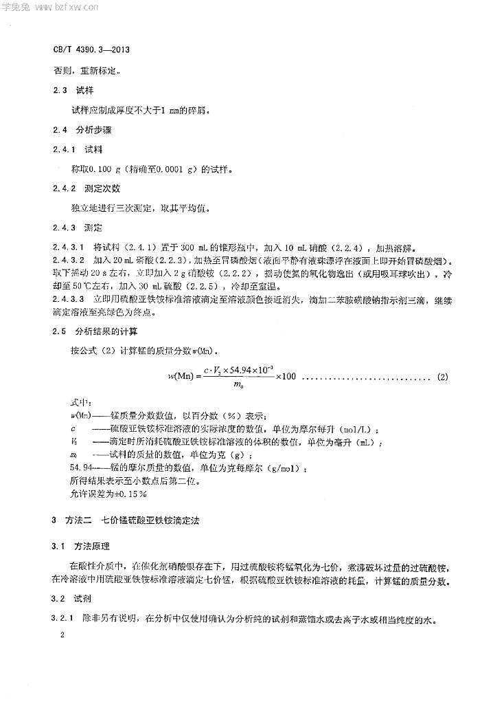 CB/T 4390.3-2013 螺旋桨用高锰铝青铜化学分析方法 第3部分:锰量的测定