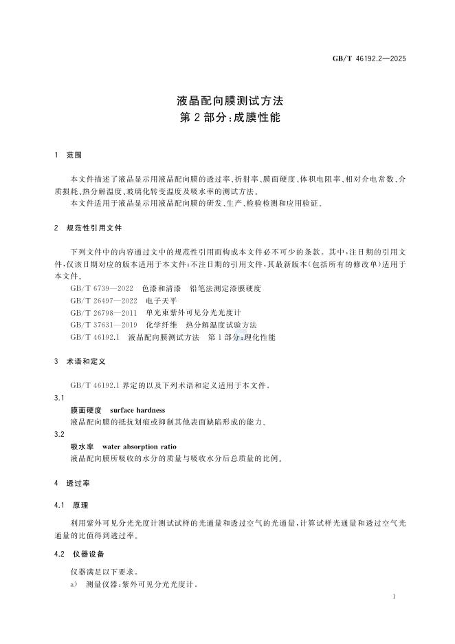 GB/T 46192.2-2025 液晶配向膜测试方法 第2部分:成膜性能