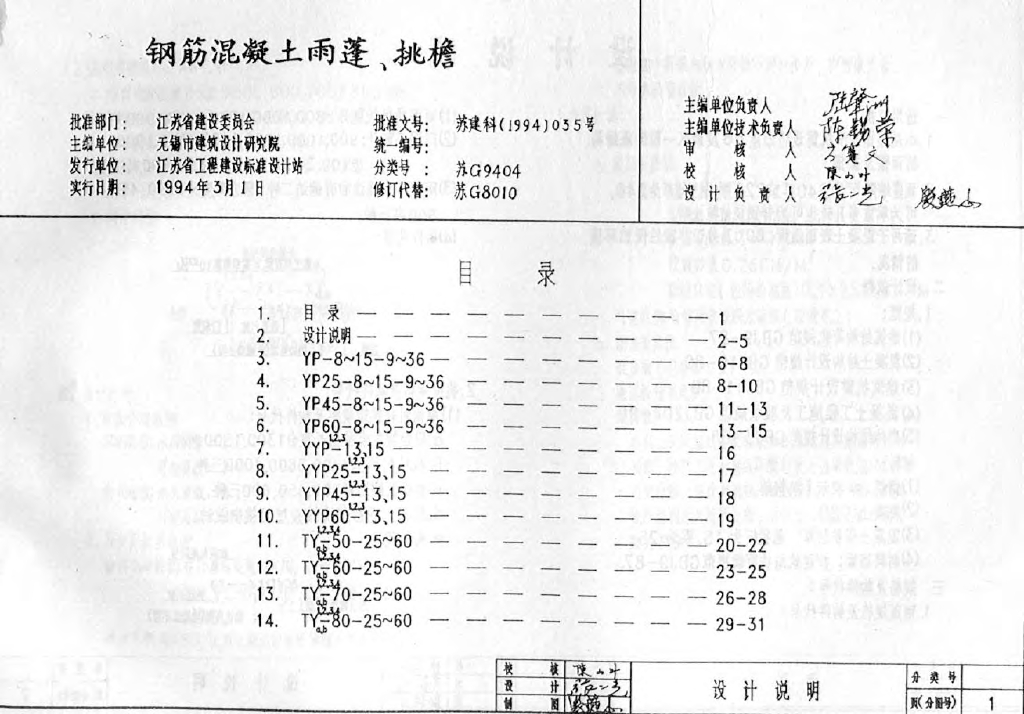 苏G9404 钢筋混凝土雨蓬、挑檐图集