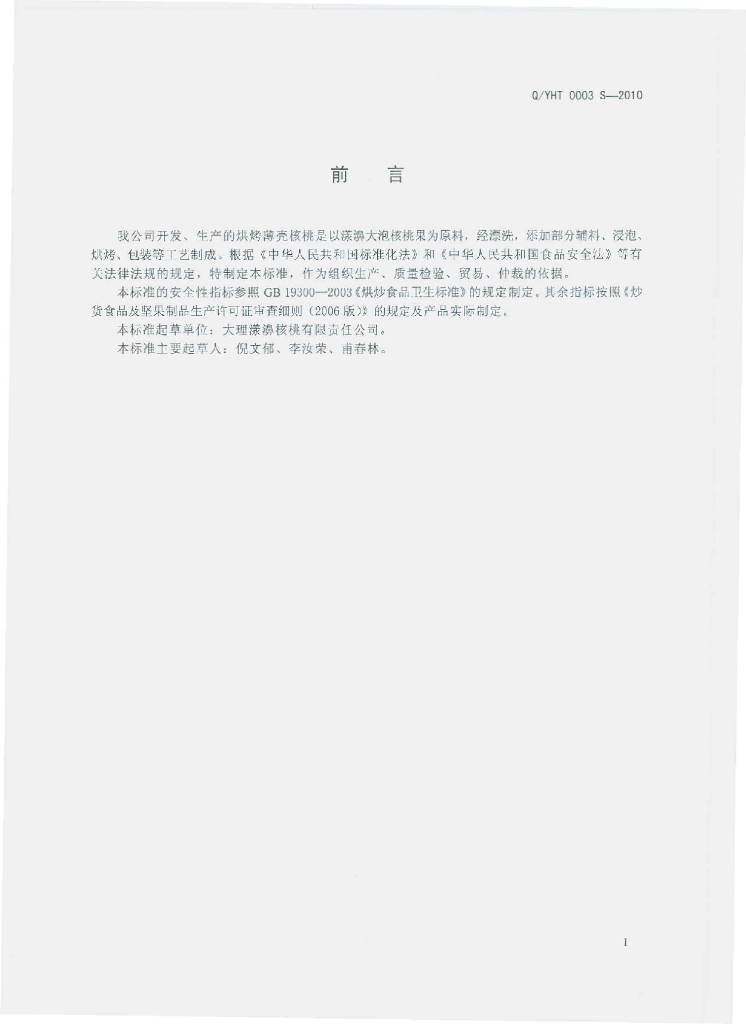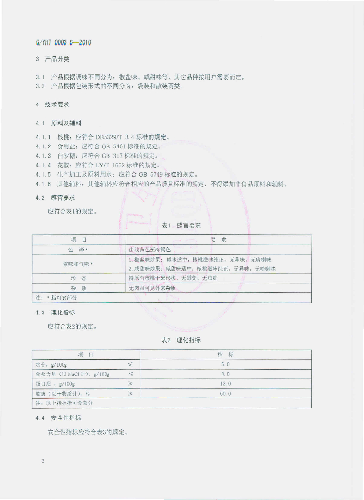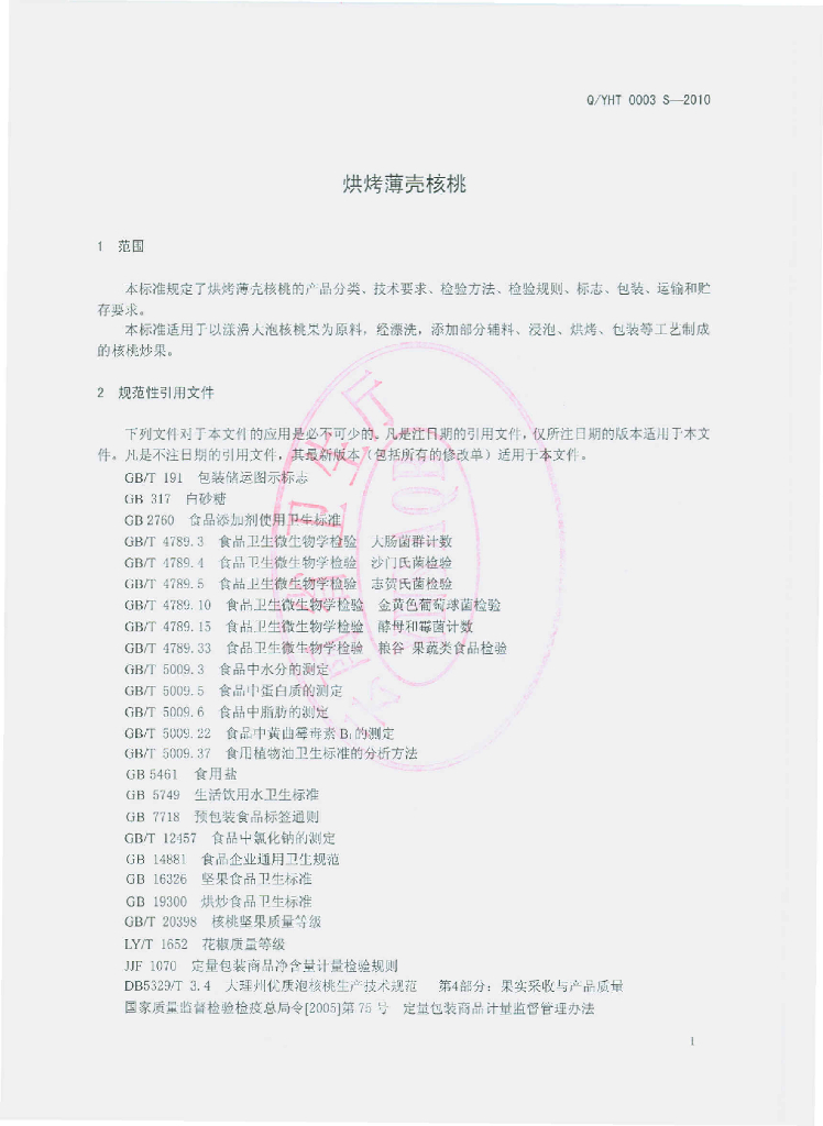 Q/YHT 0003S-2010 烘烤薄壳核桃