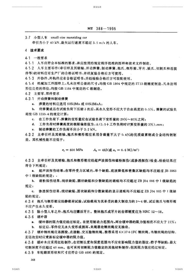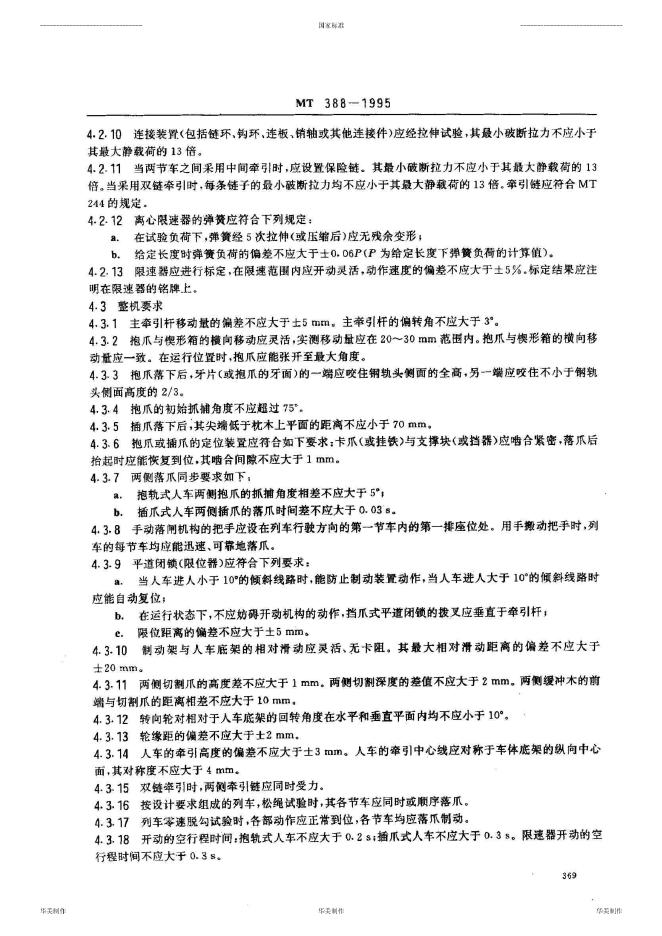 ZB 93012-1990 矿用斜井人车技术条件