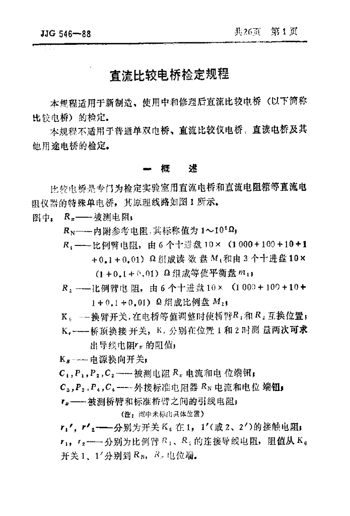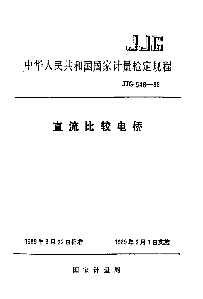 JJG 546-1988 直流比较电桥检定规程