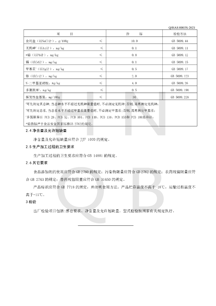 Q/HAS 0003S-2021 筒鲜鱼
