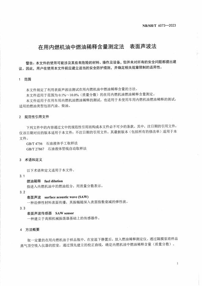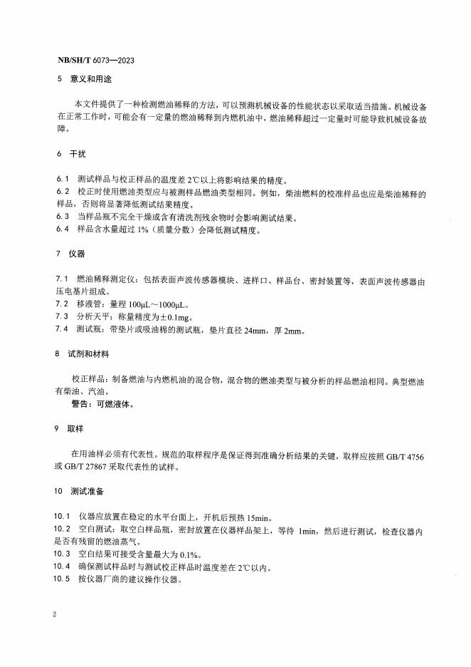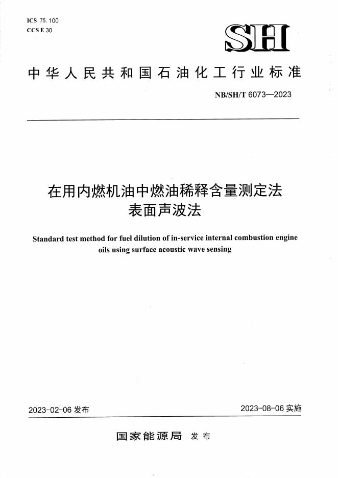 NB/SH/T 6073-2023 在用内燃机油中燃油稀释含量测定法 表面声波法