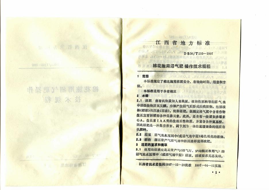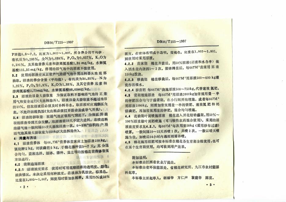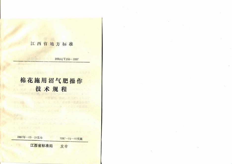 DB36/T 255-1997 棉花施用沼气肥操作技术规程