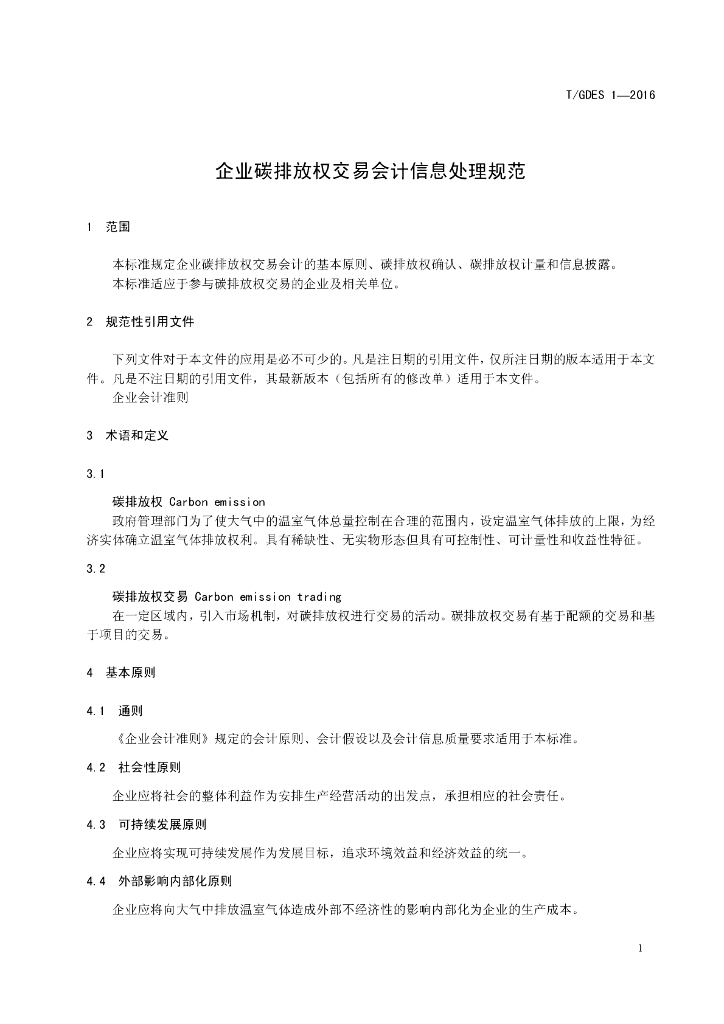 T/GDES 1-2016 企业碳排放权交易会计信息处理规范