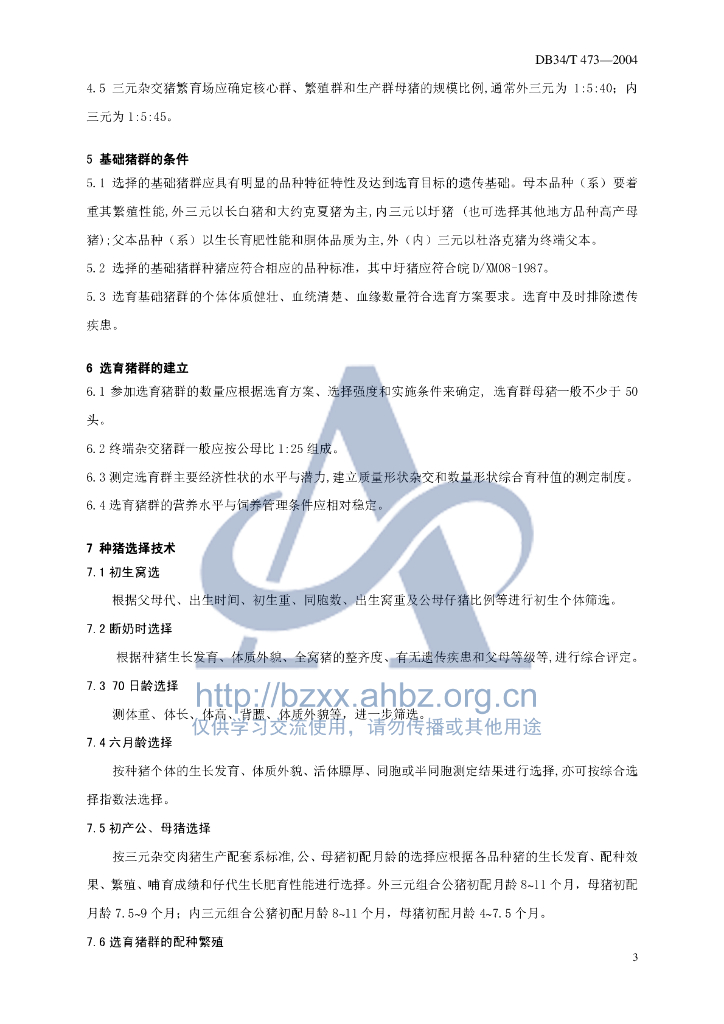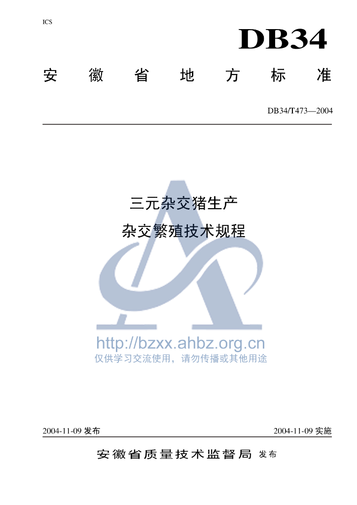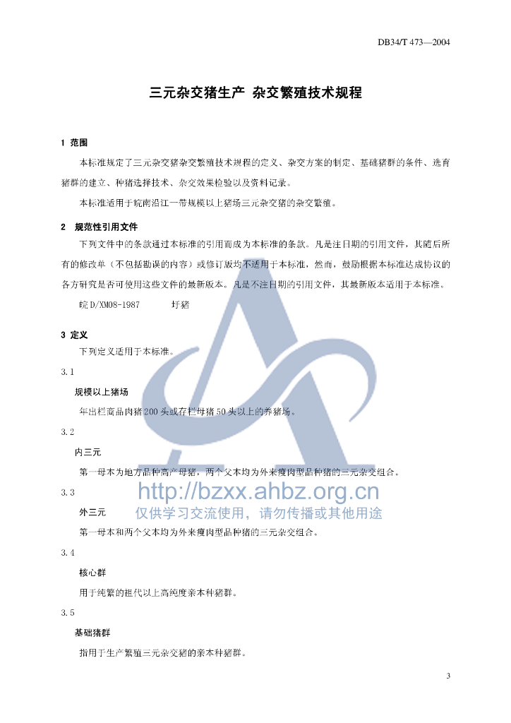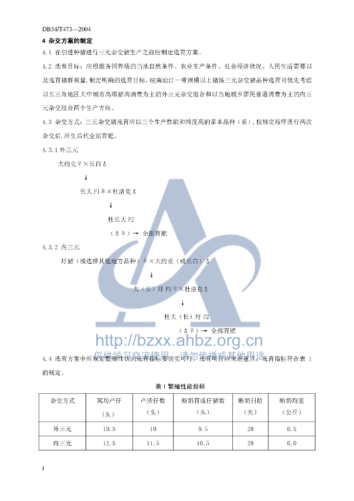 DB34/T 473-2004 三元杂交猪生产 杂交繁殖技术规程