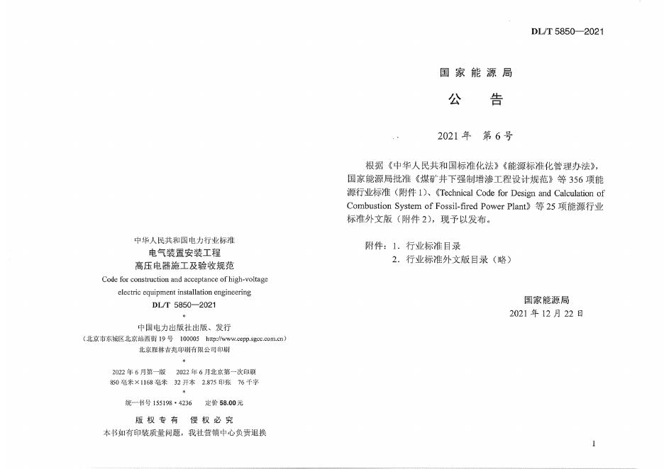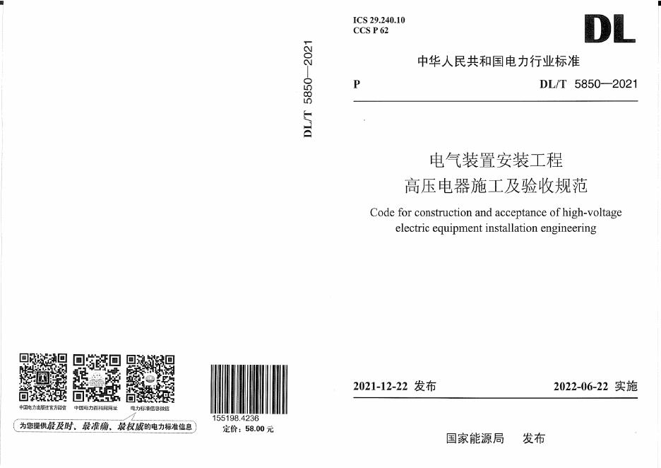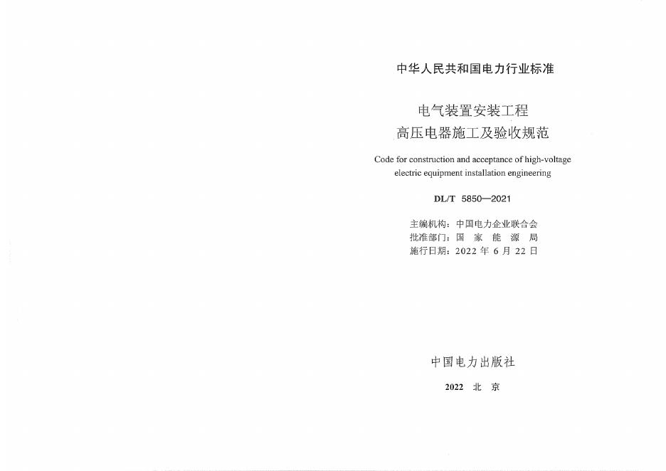 DL/T 5850-2021 电气装置安装工程 高压电器施工及验收规范(附条文说明)
