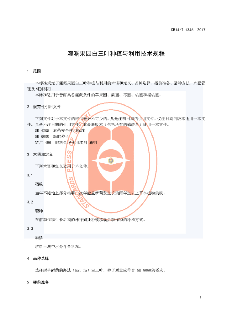 DB14/T 1346-2017 灌溉果园白三叶种植与利用技术规程