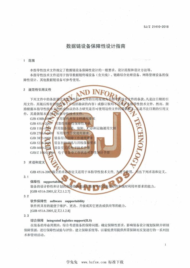 SJ/Z 21410-2018 数据链设备保障性设计指南