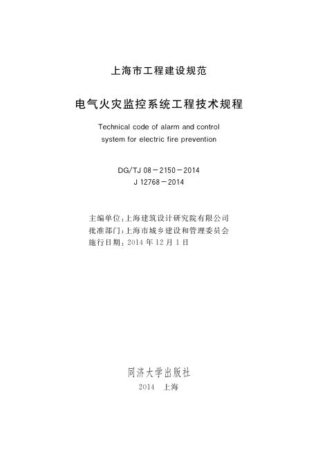 DG/TJ 08-2150-2014 电气火灾监控系统工程技术规程