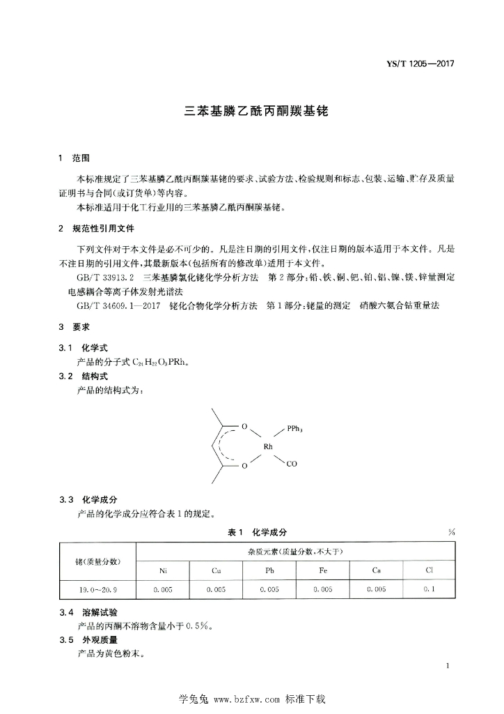 YS/T 1205-2017 三苯基膦乙酰丙酮羰基铑