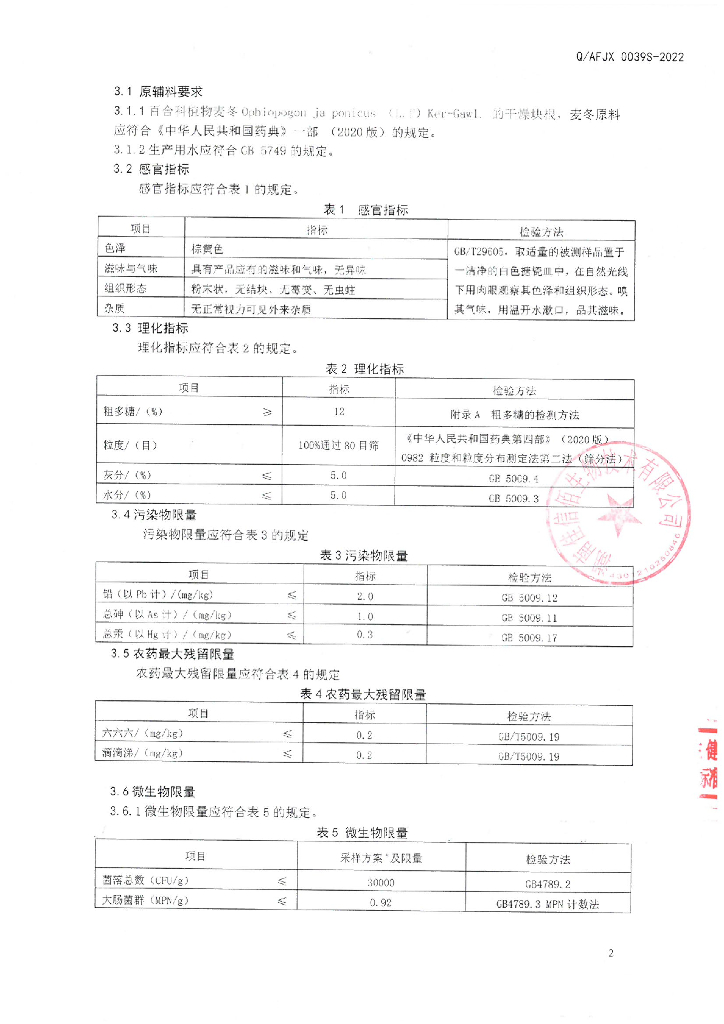 Q/AFJX 0039S-2022 保健食品原料 麦冬提取物