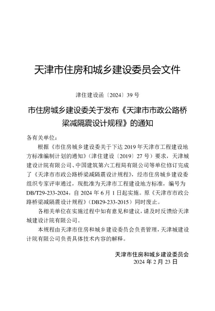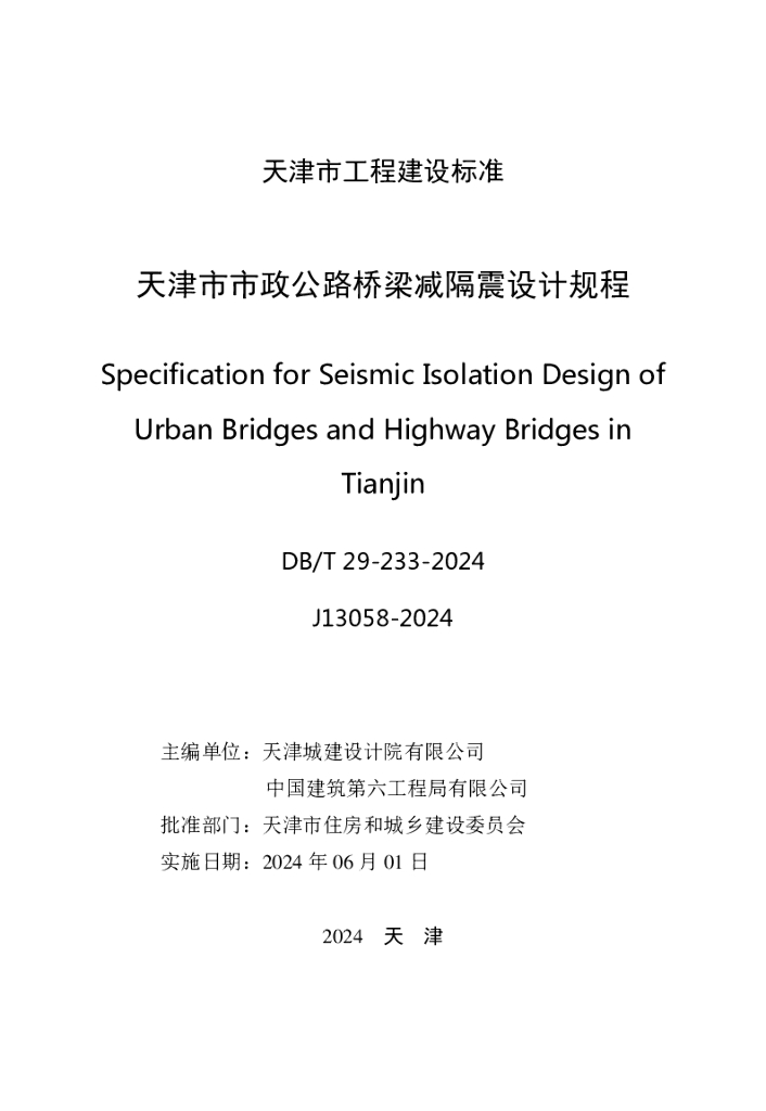 DB/T 29-233-2024 天津市市政公路桥梁减隔震设计规程