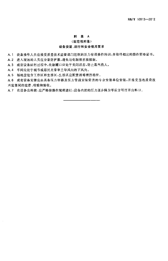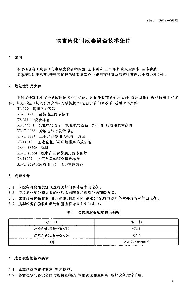 SB/T 10913-2012 病害肉化制成套设备技术条件