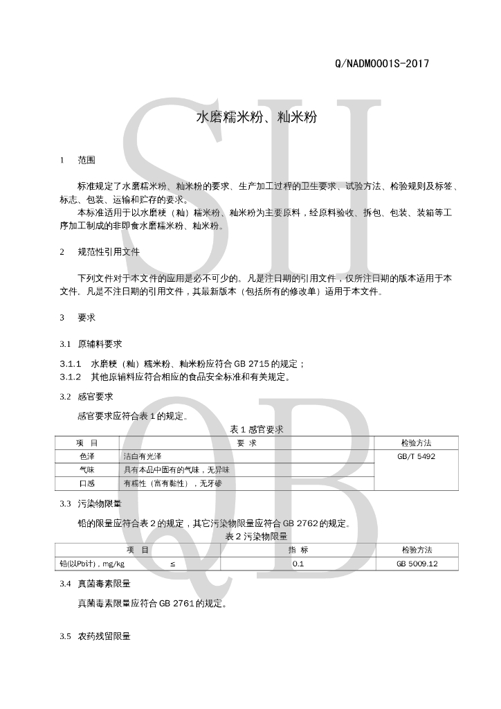 Q/NADM 0001S-2017 水磨糯米粉、籼米粉