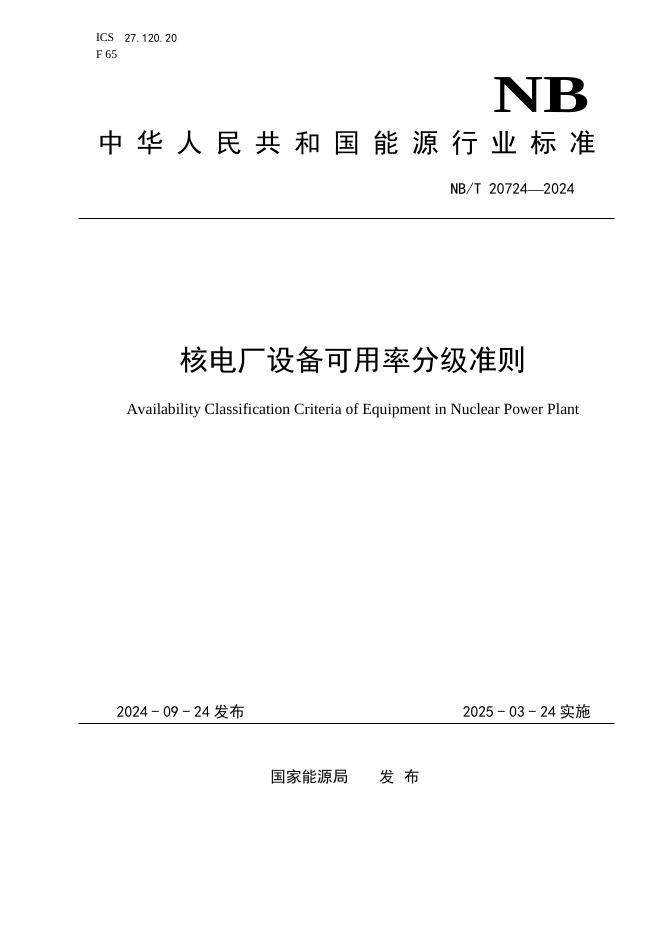NB/T 20724-2024 核电厂设备可用率分级准则