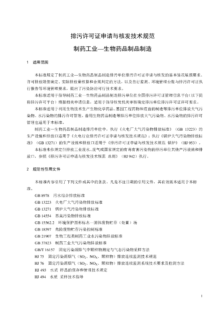 HJ 1062-2019 排污许可证申请与核发技术规范 制药工业一生物药品制品制造