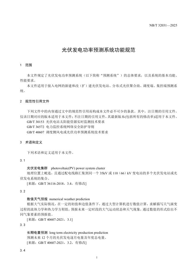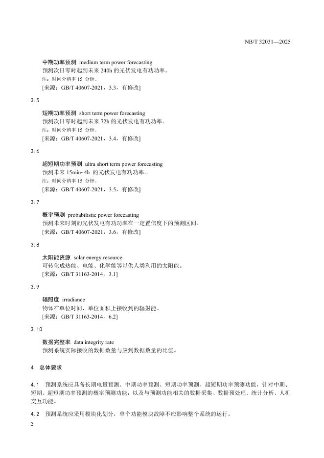 NB/T 32031-2025 光伏发电功率预测系统功能规范