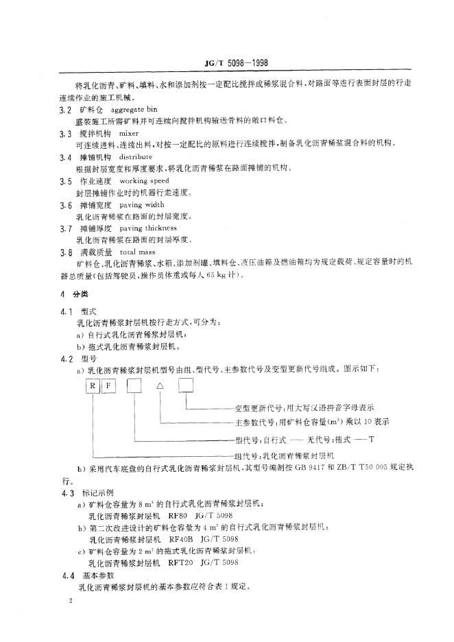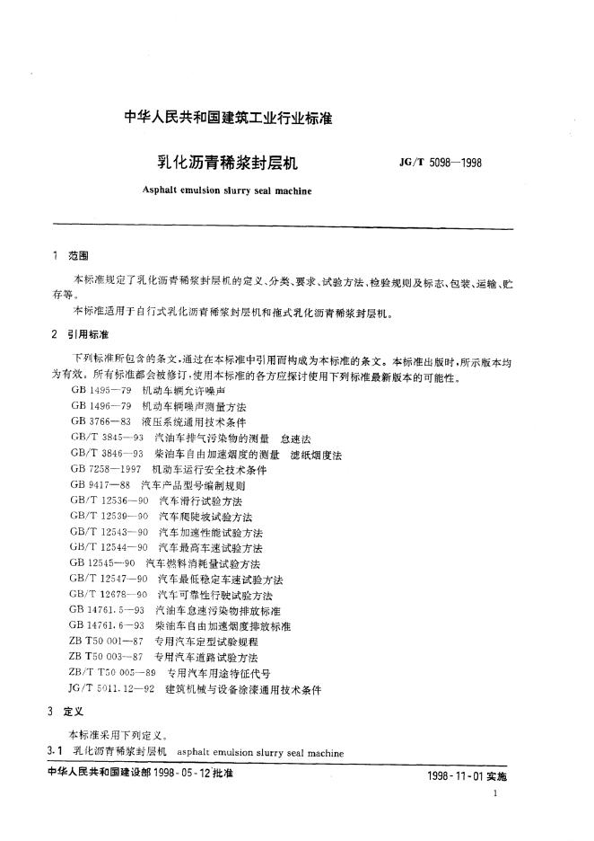 JG/T 5098-1998 乳化沥青稀桨封层机