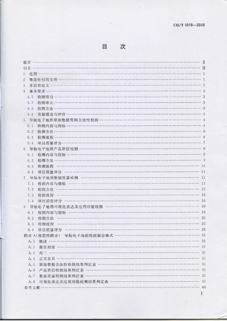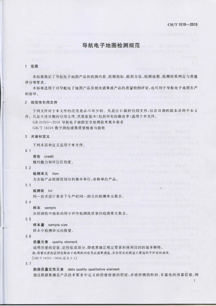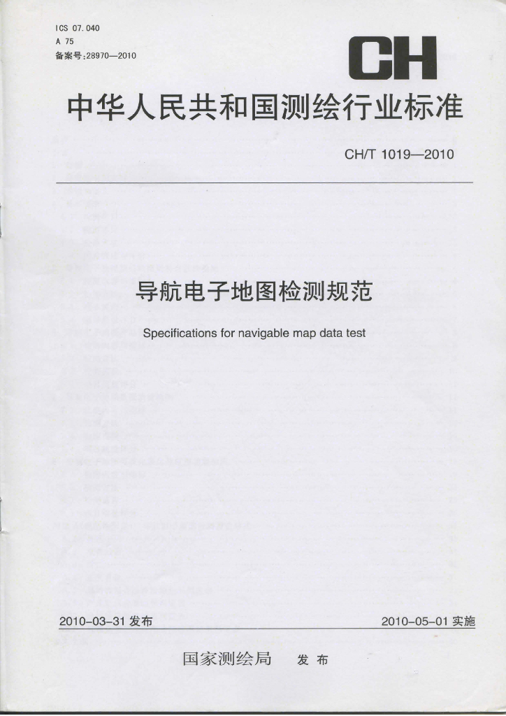 CH/T 1019-2010 导航电子地图检测规范