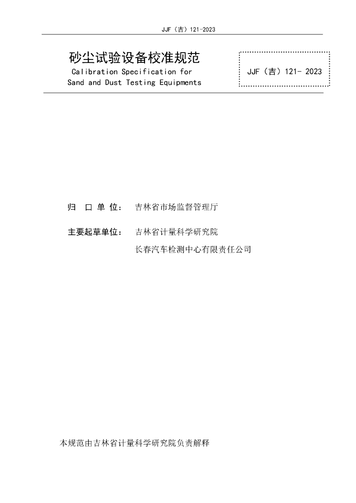JJF(吉)121-2023 砂尘试验设备校准规范