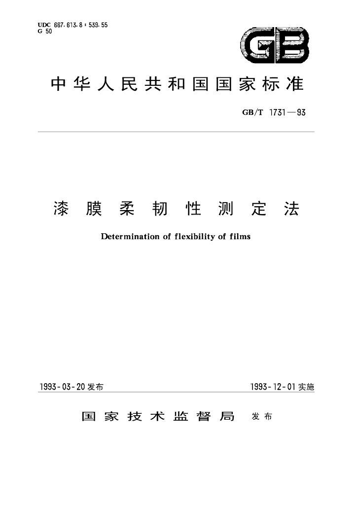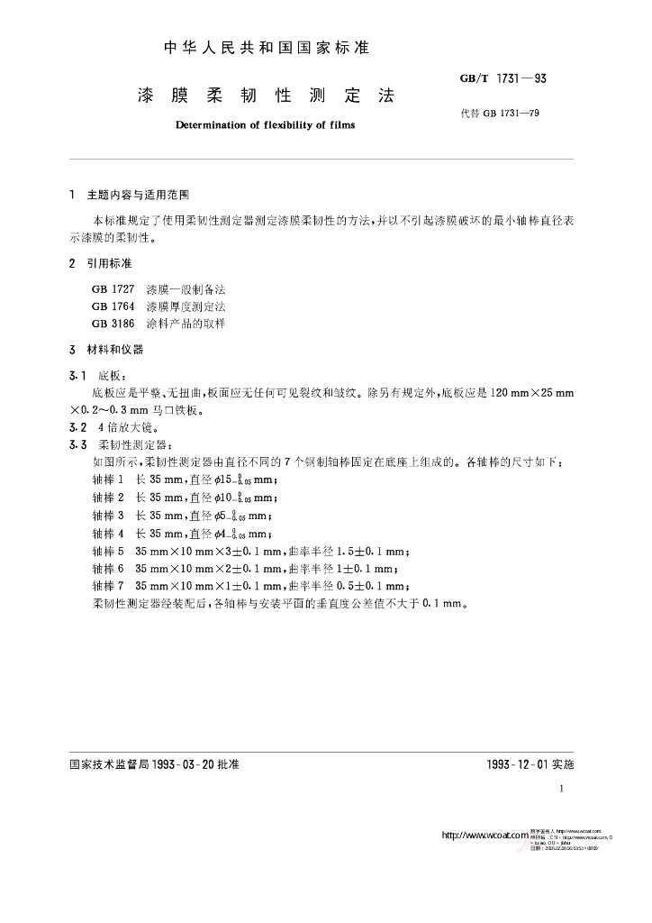 GB/T 1731-1993 漆膜柔韧性测定法