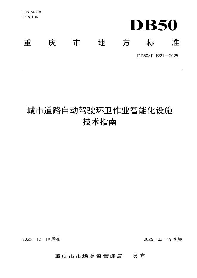 DB50/T 1921-2025 城市道路自动驾驶环卫作业智能化设施技术指南