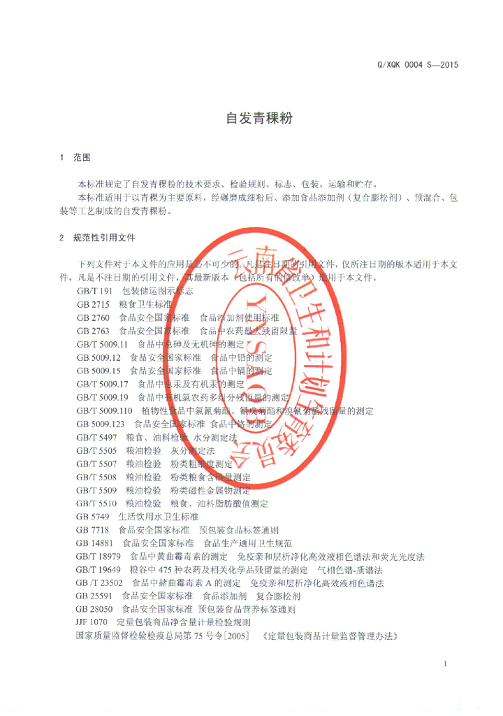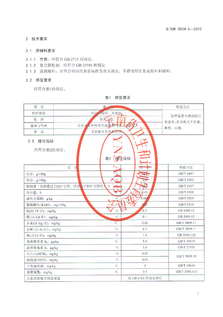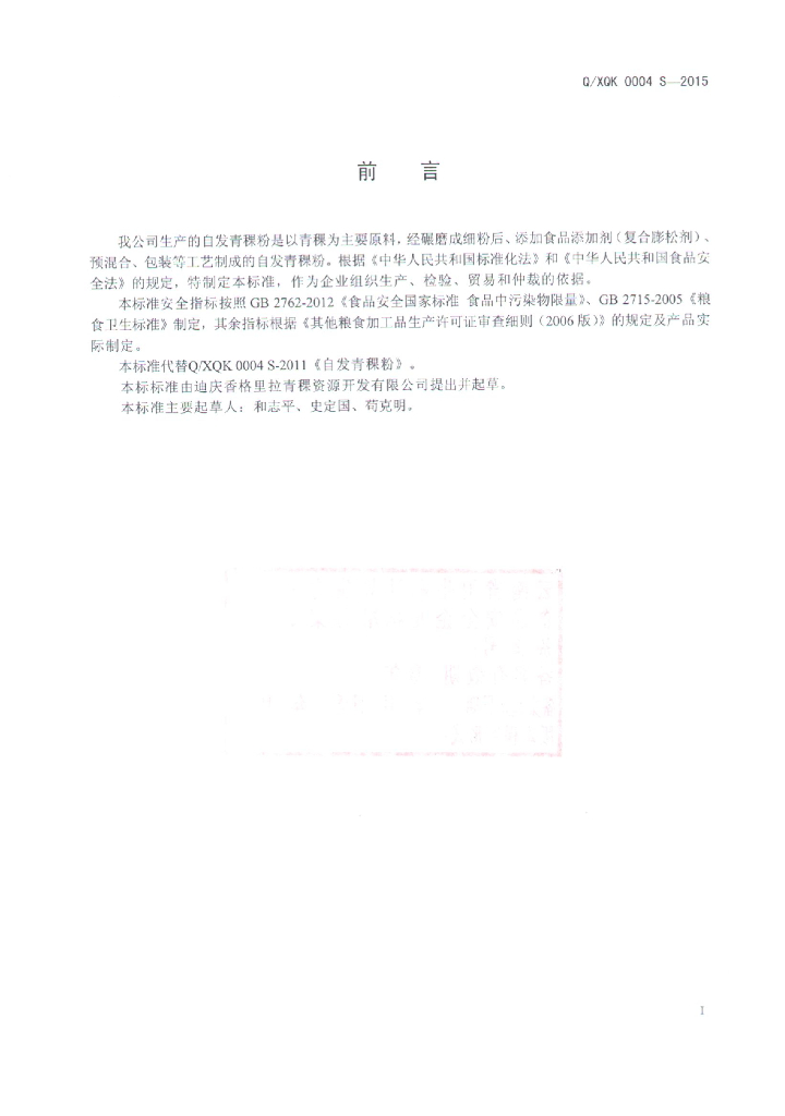 Q/XQK 0004S-2015 迪庆香格里拉青稞资源开发有限公司 自发青稞粉