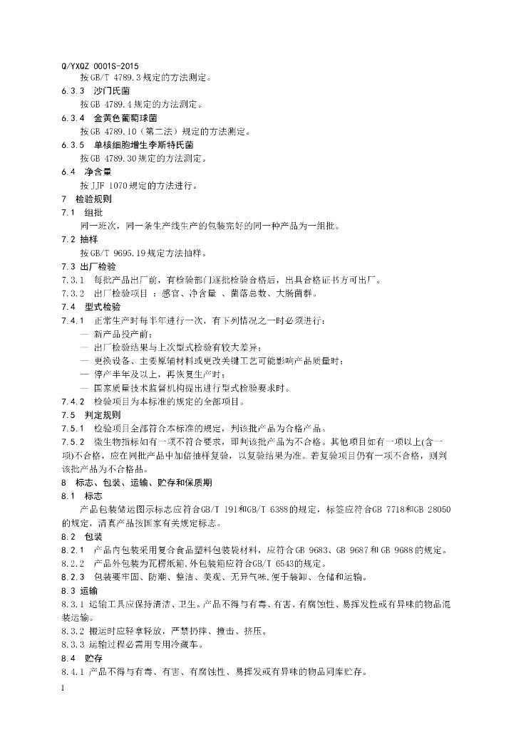 Q/YXQZ 0001S-2015 阳信清真肉类有限公司 熏烤羊肉制品