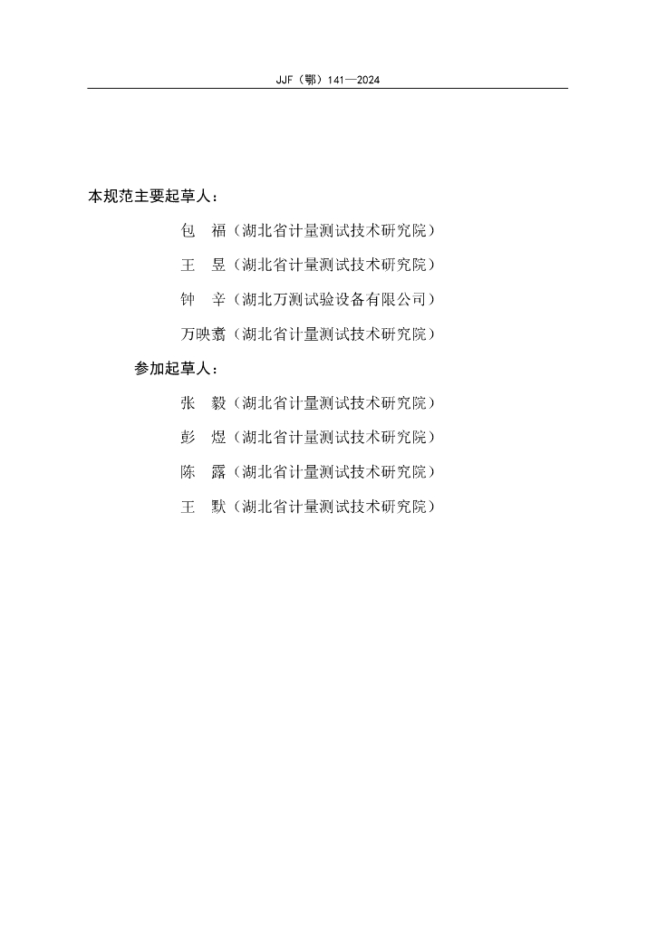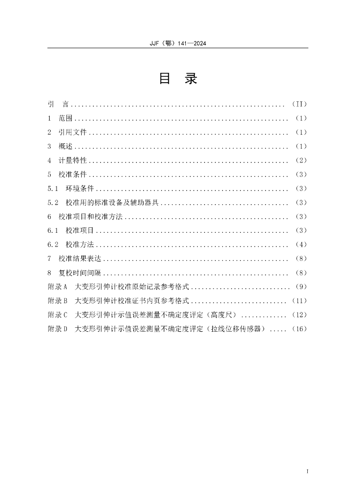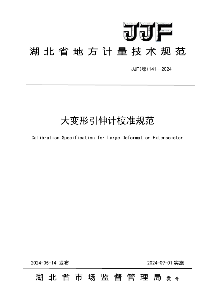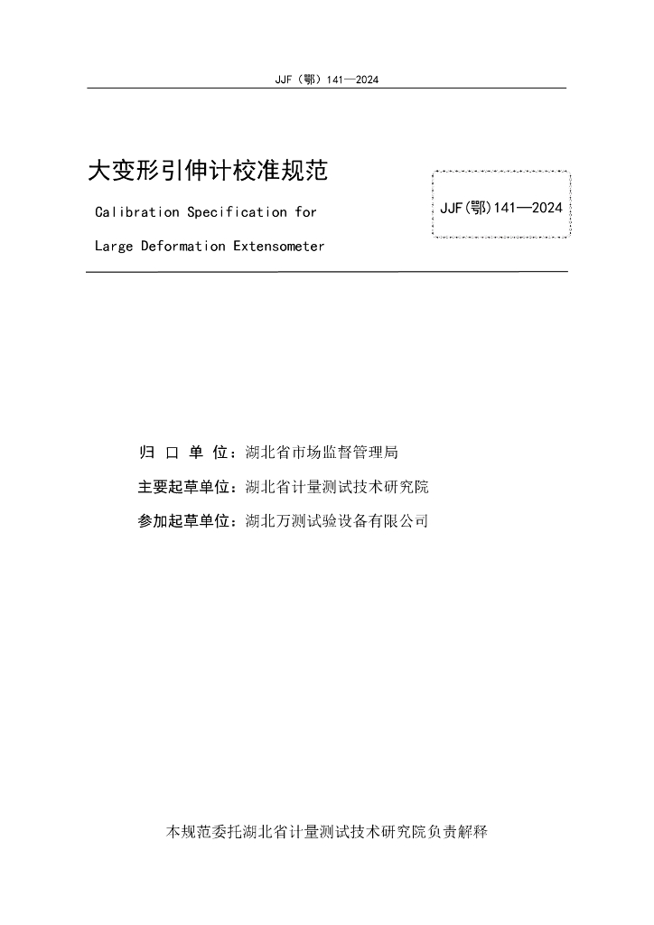 JJF(鄂)141-2024 大变形引伸计校准规范