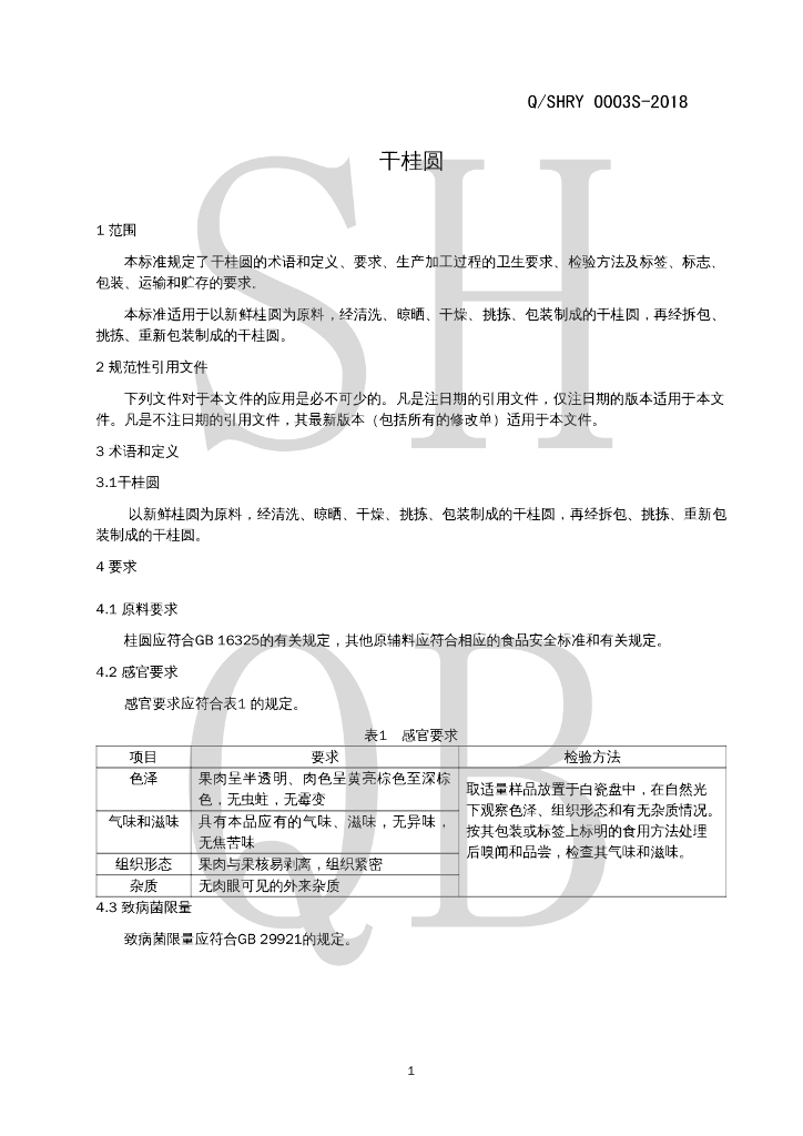 Q/SHRY 0003S-2018 干桂圆