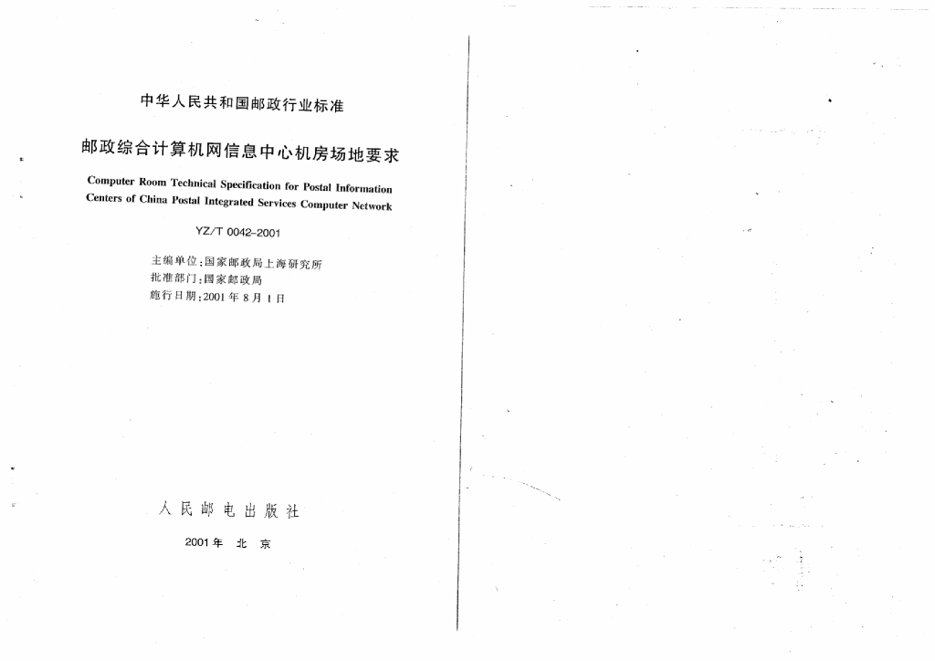YZ/T 0042-2001 邮政综合计算机网信息中心机房场地要求