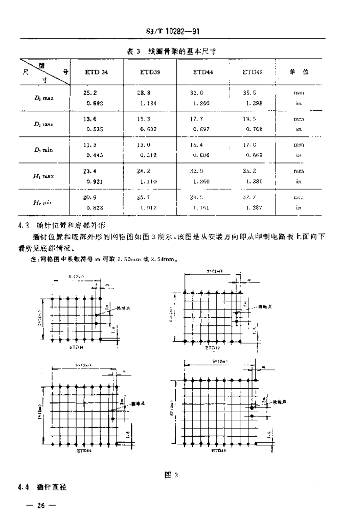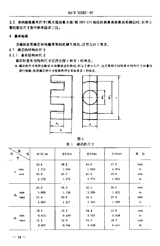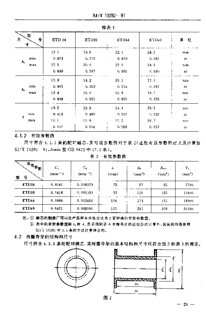 SJ/T 10282-1991 电源用磁性氧化物ETD磁芯的尺寸