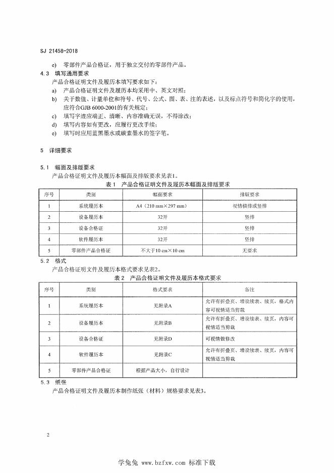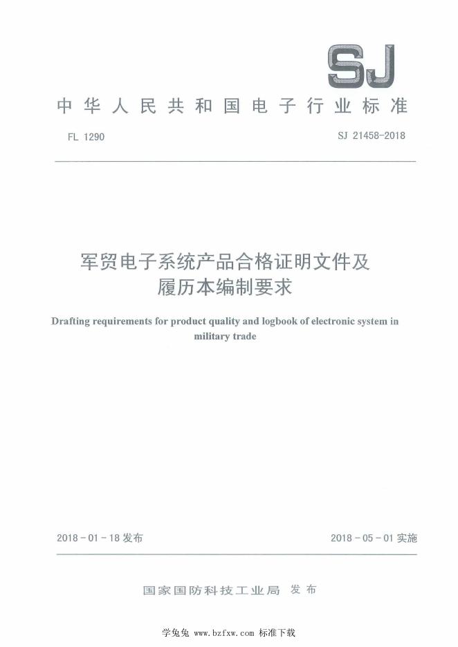 SJ 21458-2018 军贸电子系统产品合格证明文件及履历本编制要求