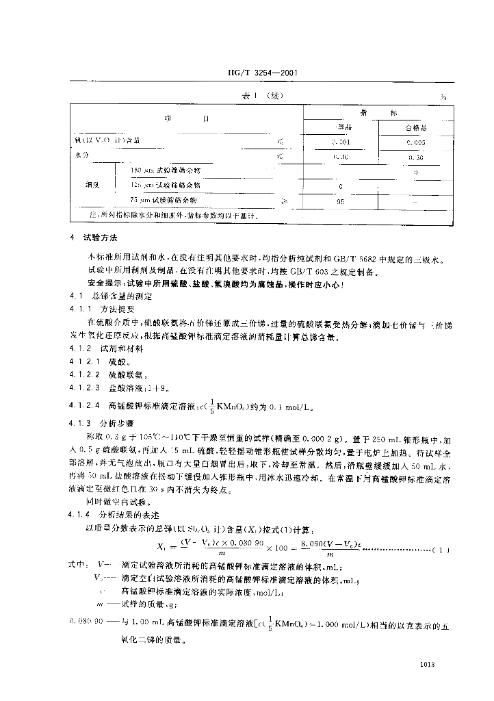 HG/T 3254-2001 电子工业用水合锑酸钠