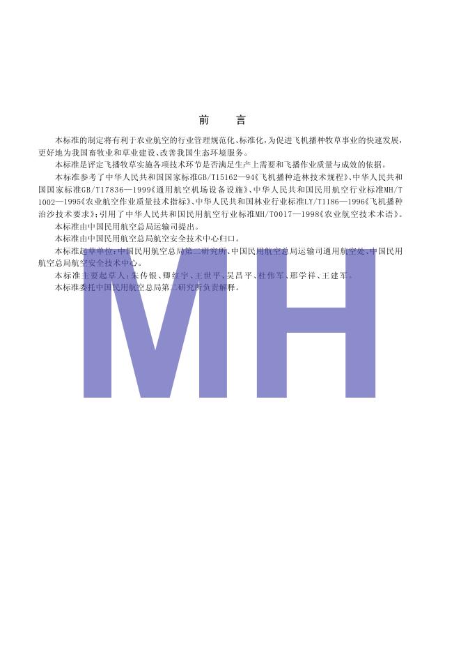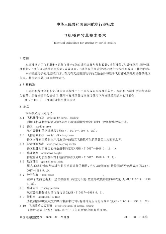 MH/T 1012-2001 飞机播种牧草技术要求