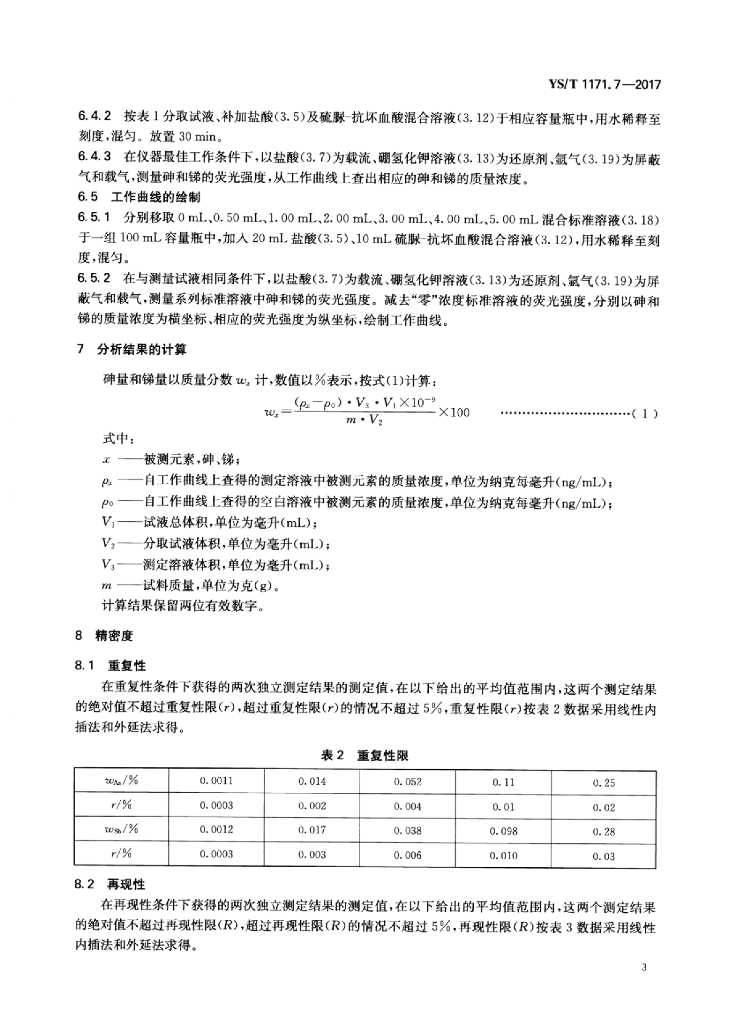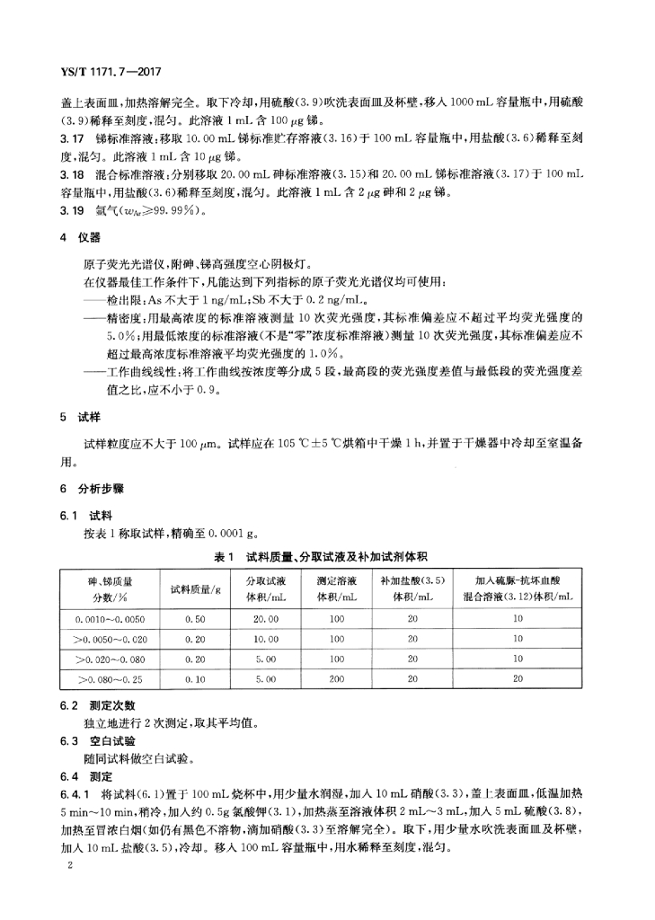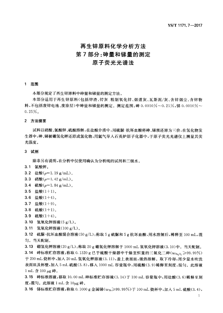 YS/T 1171.7-2017 再生锌原料化学分析方法 第7部分:砷量和锑量的测定原子荧光光谱法