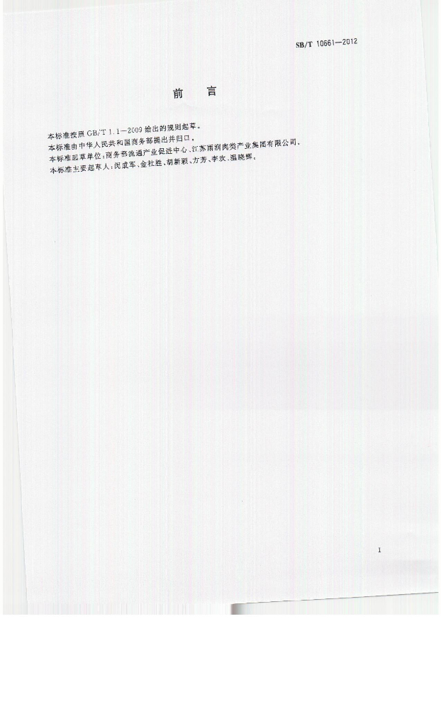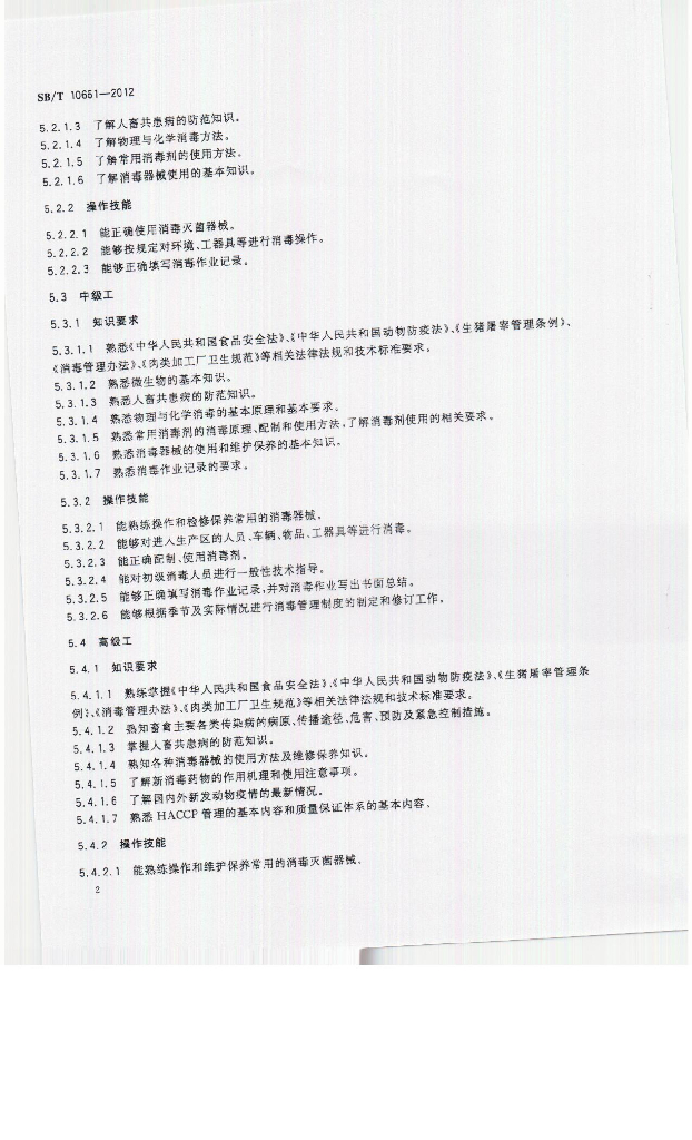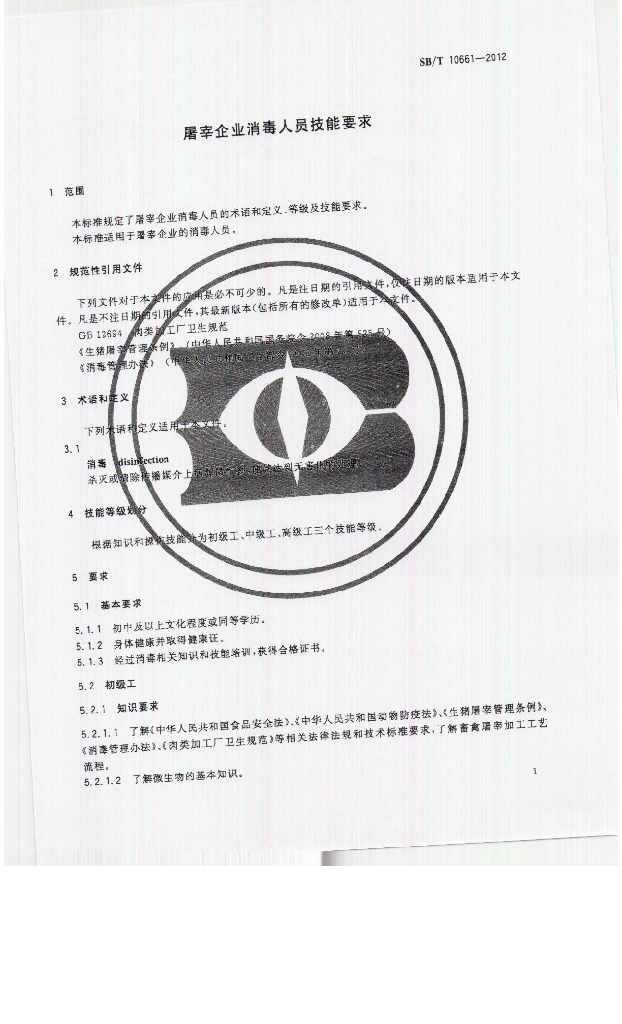 SB/T 10661-2012 屠宰企业消毒人员技能要求