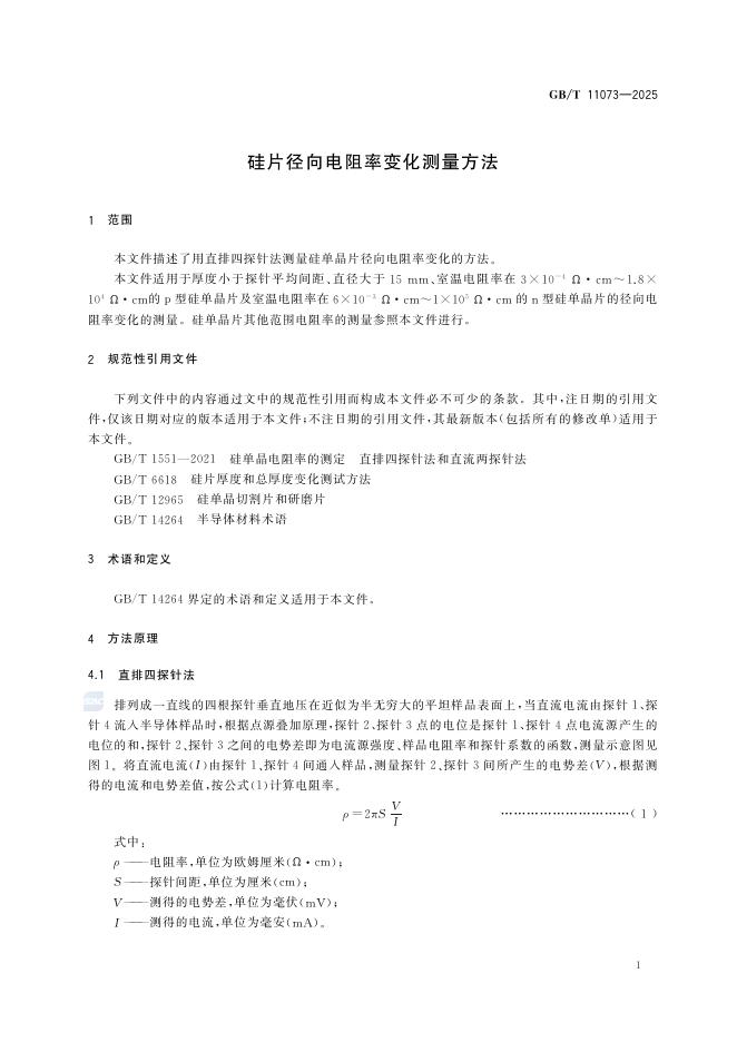 GB/T 11073-2025 硅片径向电阻率变化测量方法