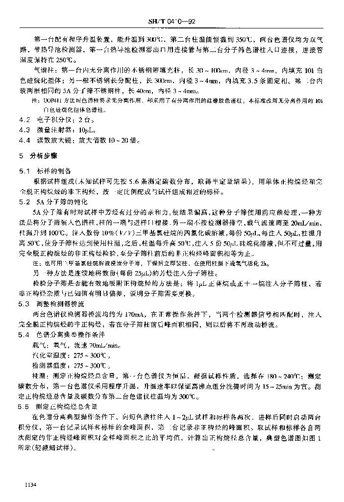 SH/T 0410-1992 液体石蜡及原料中正构烷烃含量及碳数分布测定法(气相色谱法)