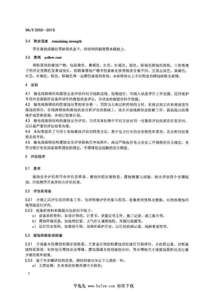 DL/T 2055-2019 输电线路钢结构腐蚀安全评估导则