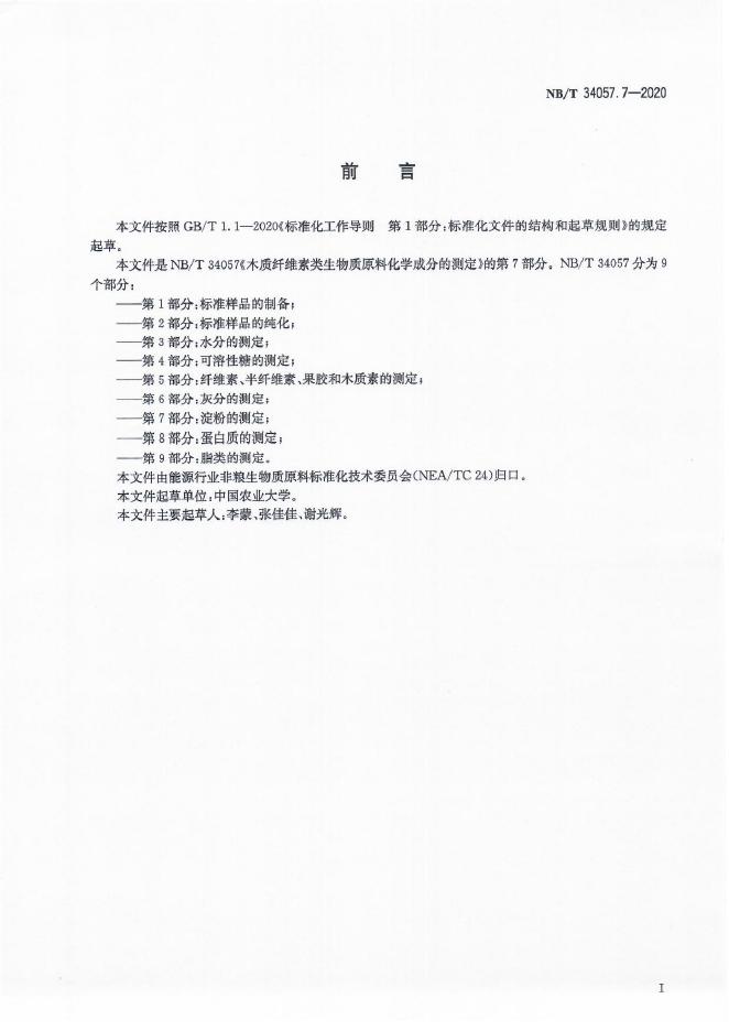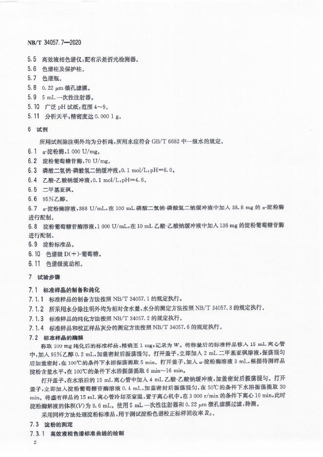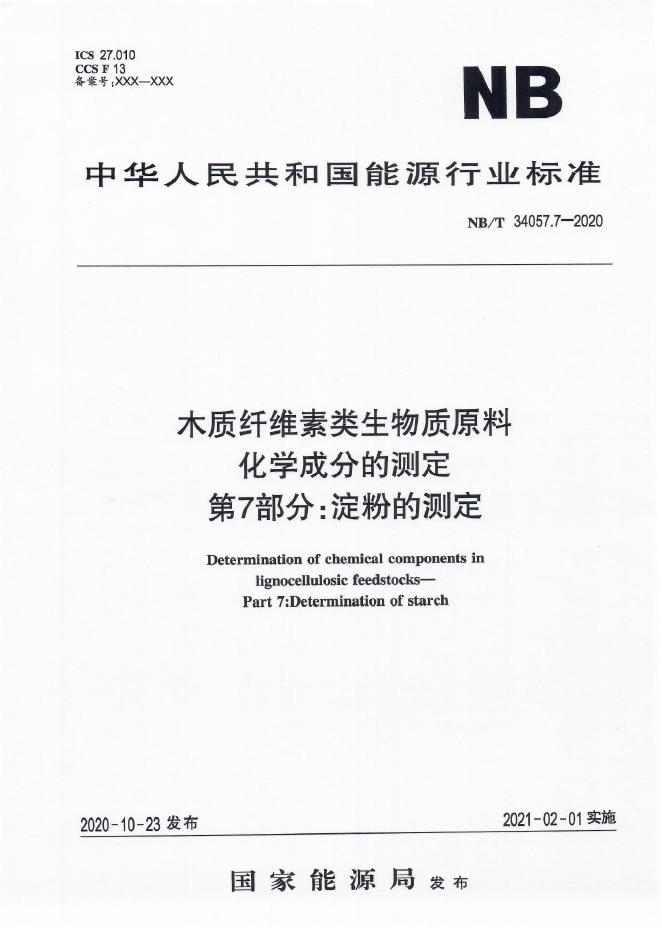 NB/T 34057.7-2020 木质纤维素类生物质原料化学成分的测定 第7部分:淀粉的测定