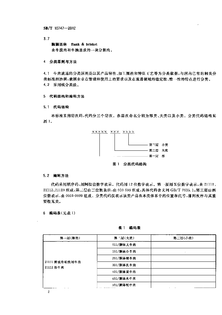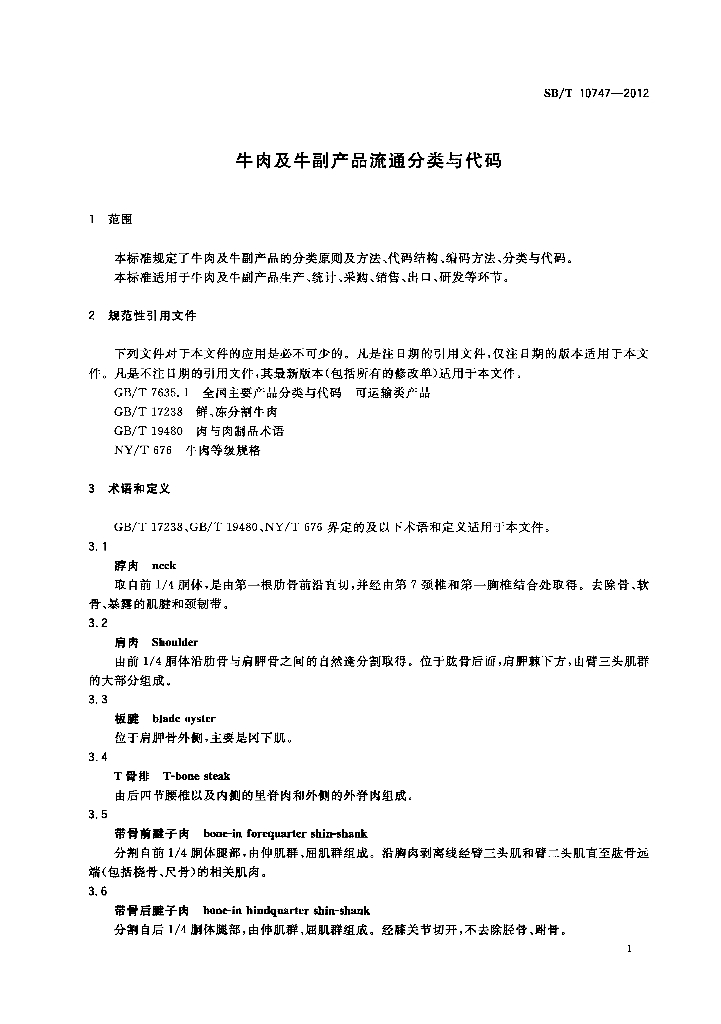 SB/T 10747-2012 牛肉及牛副产品流通分类与代码