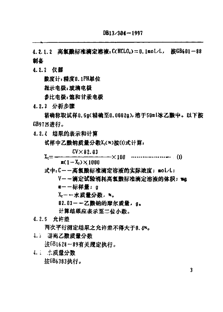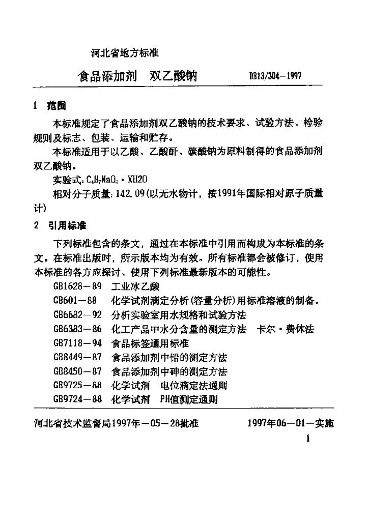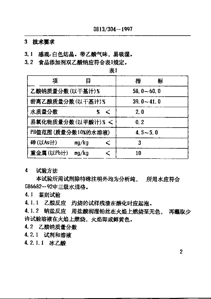 DB13/ 304-1997 食品添加剂 双乙酸钠