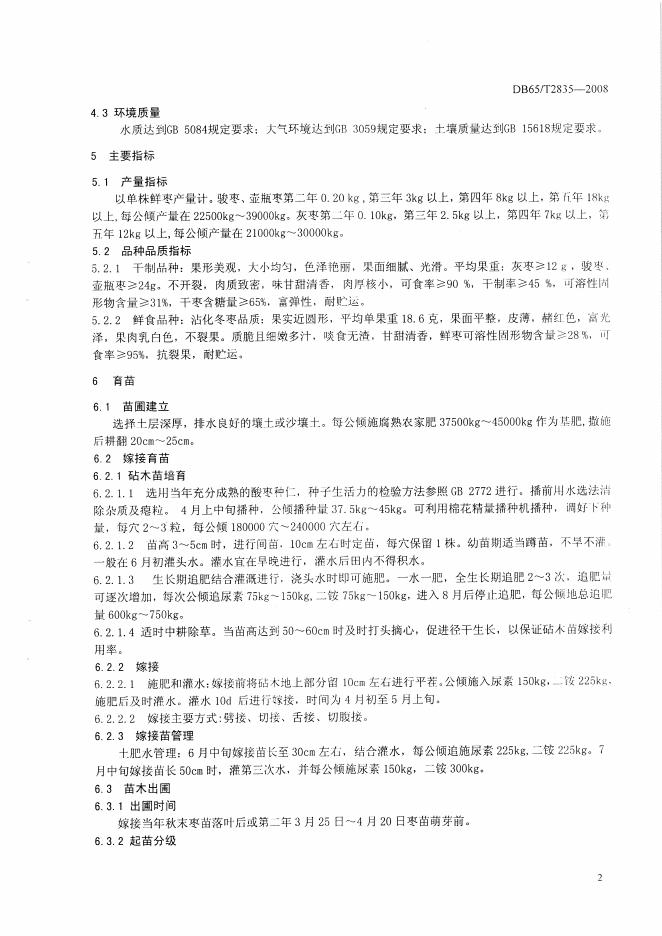 DB65/T 2835-2008 红枣矮化密植丰产栽培技术规程