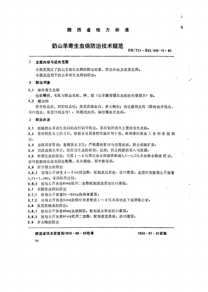 DB61/T B43.096.16-1990 奶山羊寄生虫病防治技术规范