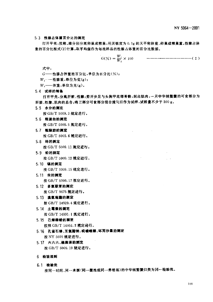 NY 5064-2001 无公害食品 中华绒鳌蟹